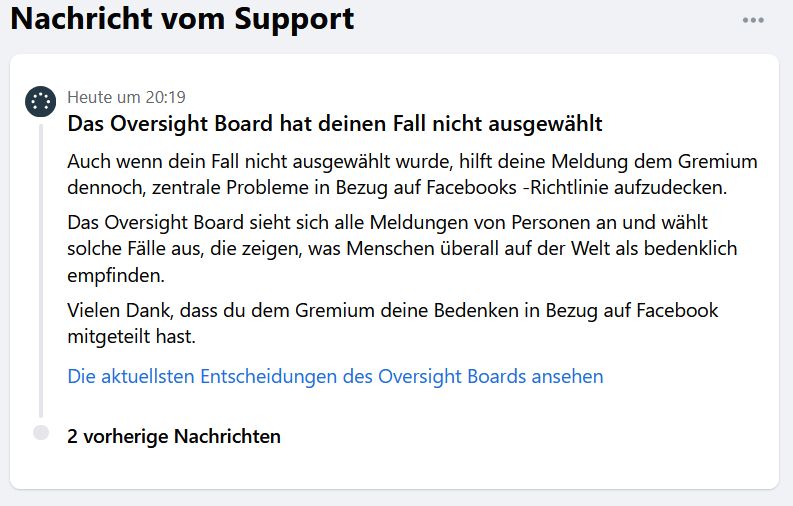 Ach ja, Da steht was von 'WIRD ÜBERPFÜFT'. Wie Jeder weiss, wird bei facebook rein gar nichts wirklich überprüft. Nazis dürfen alles melden und es wird ihnen zugestimmt. Meldet man hingegen selbst was bei diesem Saftladen, bleibt das gewöhnlich ohne Folgen für denVerursacher: